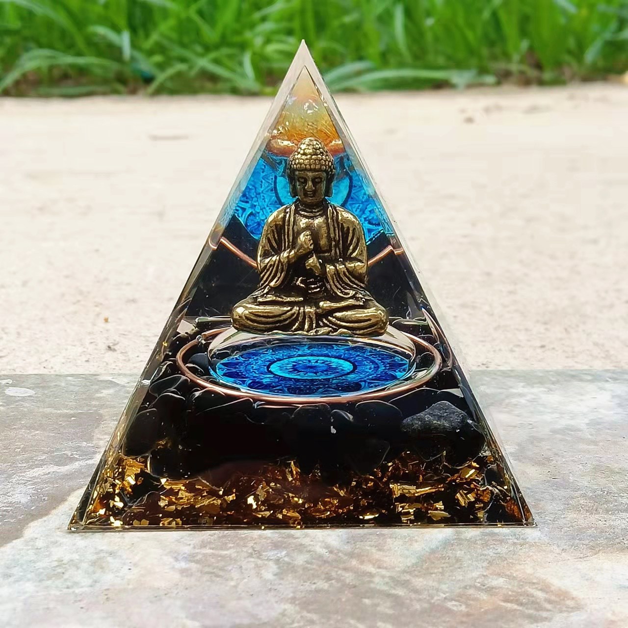 Natural Tiger Eye Orgonite Pyramid Healing Crystals Centerpiece Energy Generator Reiki Chakra Multiplier Orgone Amethyst Meditation